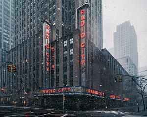 Radio City Music Hall in Midtown Manhattan taken during a snowstorm in Feb 2021. Digital